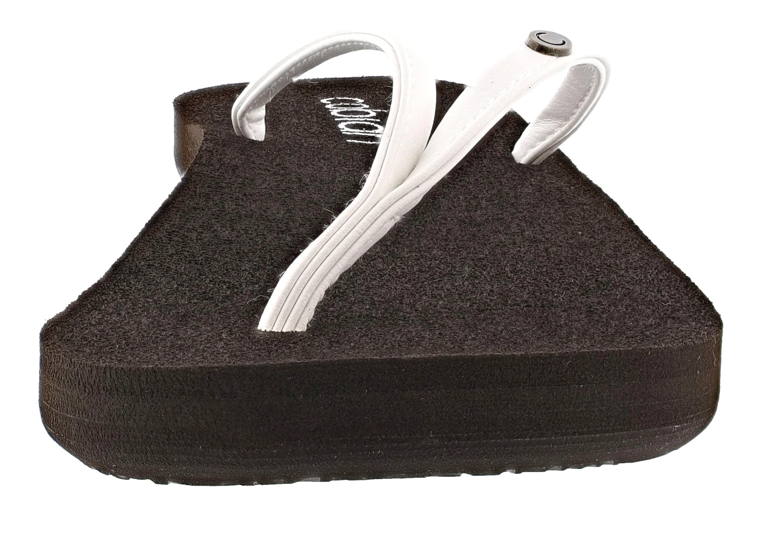 The Nias Bounce features a skinny strap and an ultra squishy low-profile top-sole with full arch support.