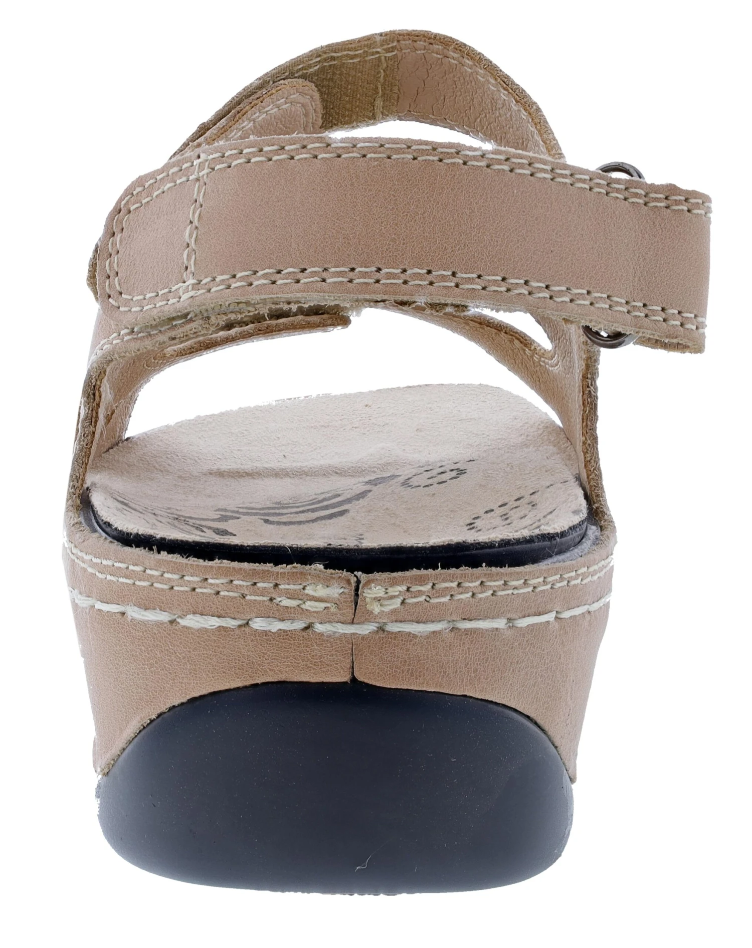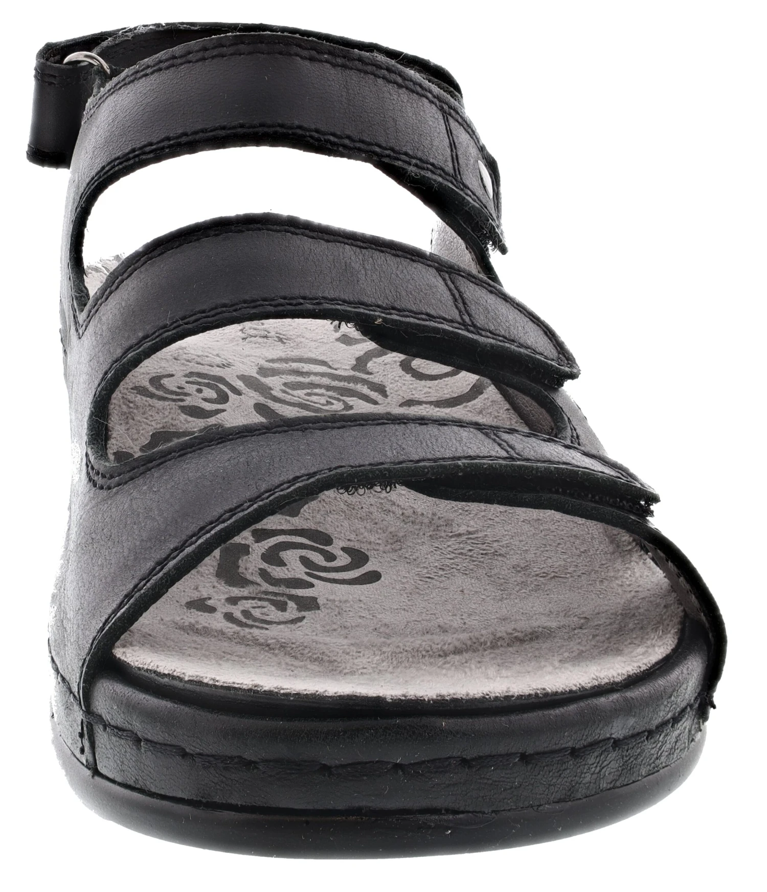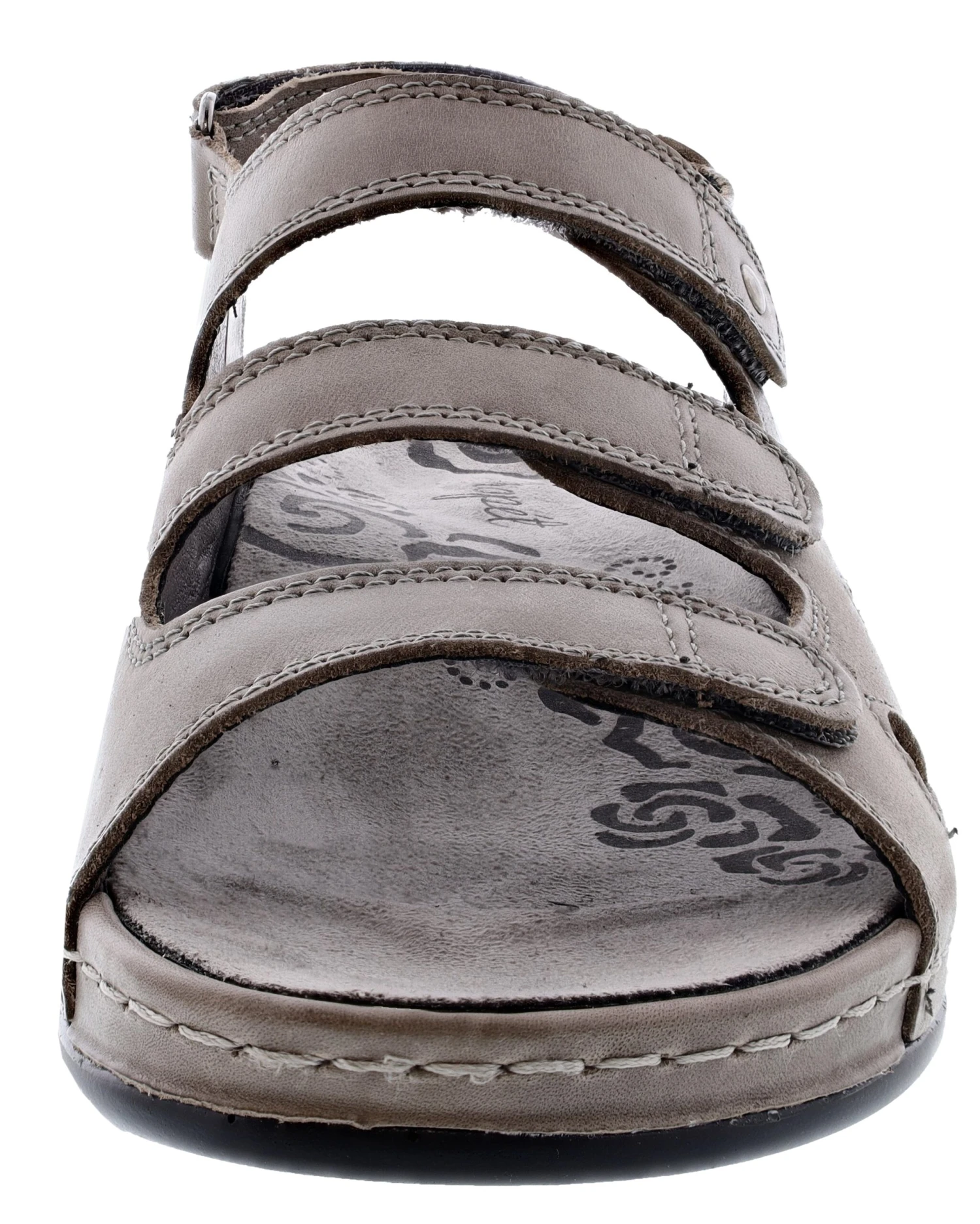 Full-grain leather full coverage sandal with four adjustable hook and loop straps for fit
