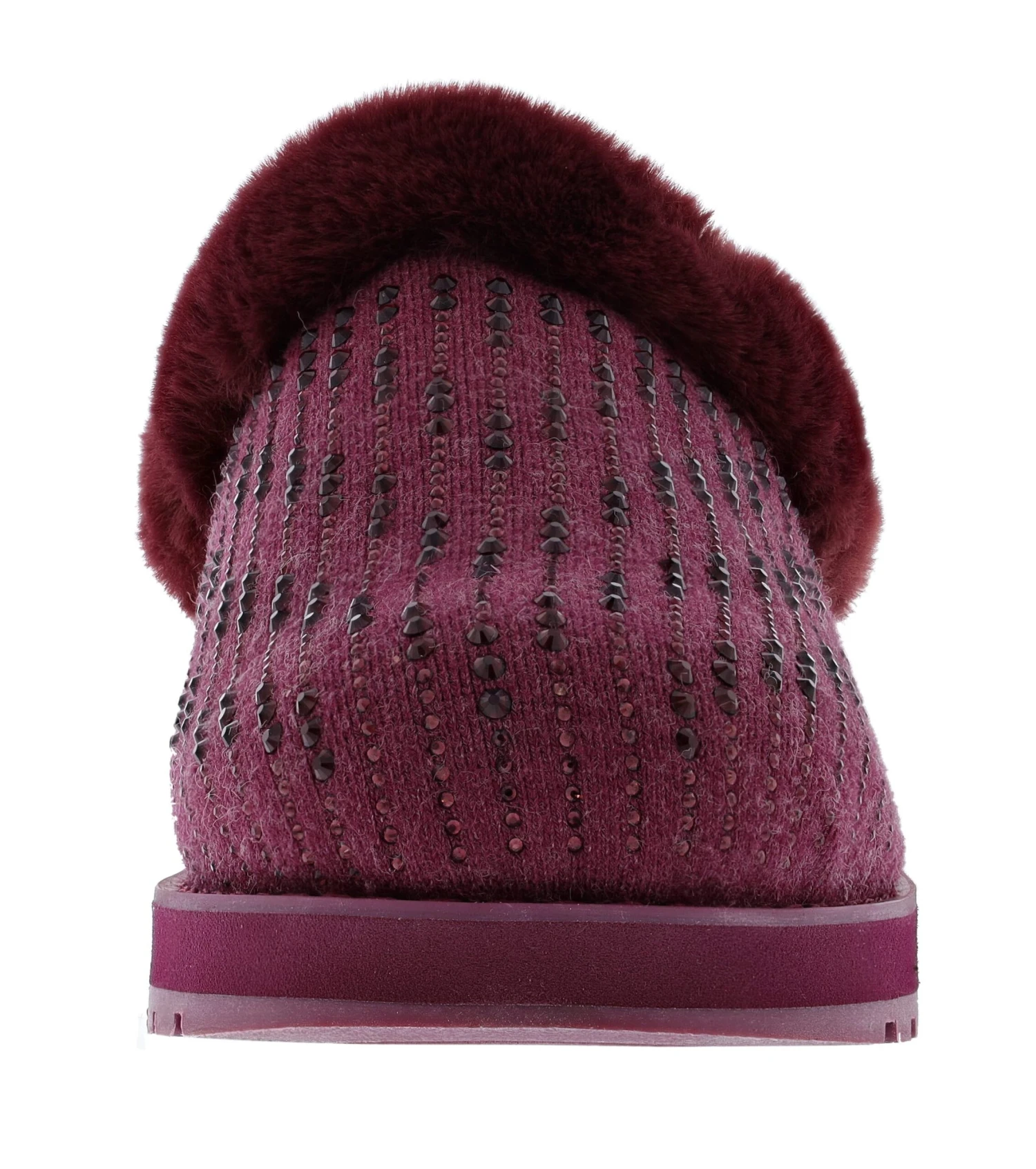 Sparkle and shine in cozy comfort wearing BOBS from Skechers Keepsakes – Fully Frosted. This vegan clog-style slipper features a soft knit upper with mini rhinestone ‘stripes’ embellishment, faux-fur collar and lining, and a cushioned Skechers Memory Foam footbed.