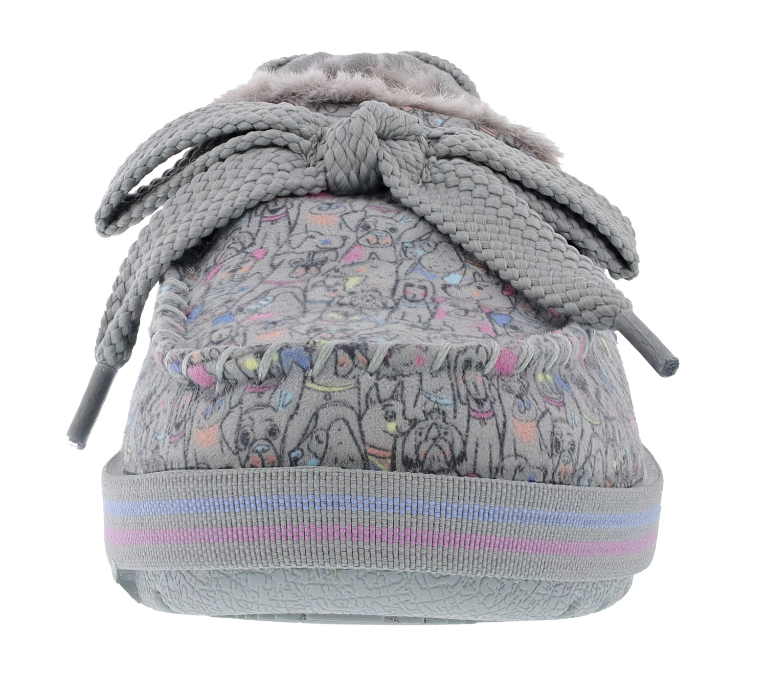 Get cozy in barkingly cute style with BOBS from Skechers Too Cozy – Doodle Parade. This casual slipper features a woven fabric upper with an allover dog print, faux fur lining, bow accent and cushioned Memory Foam footbed.