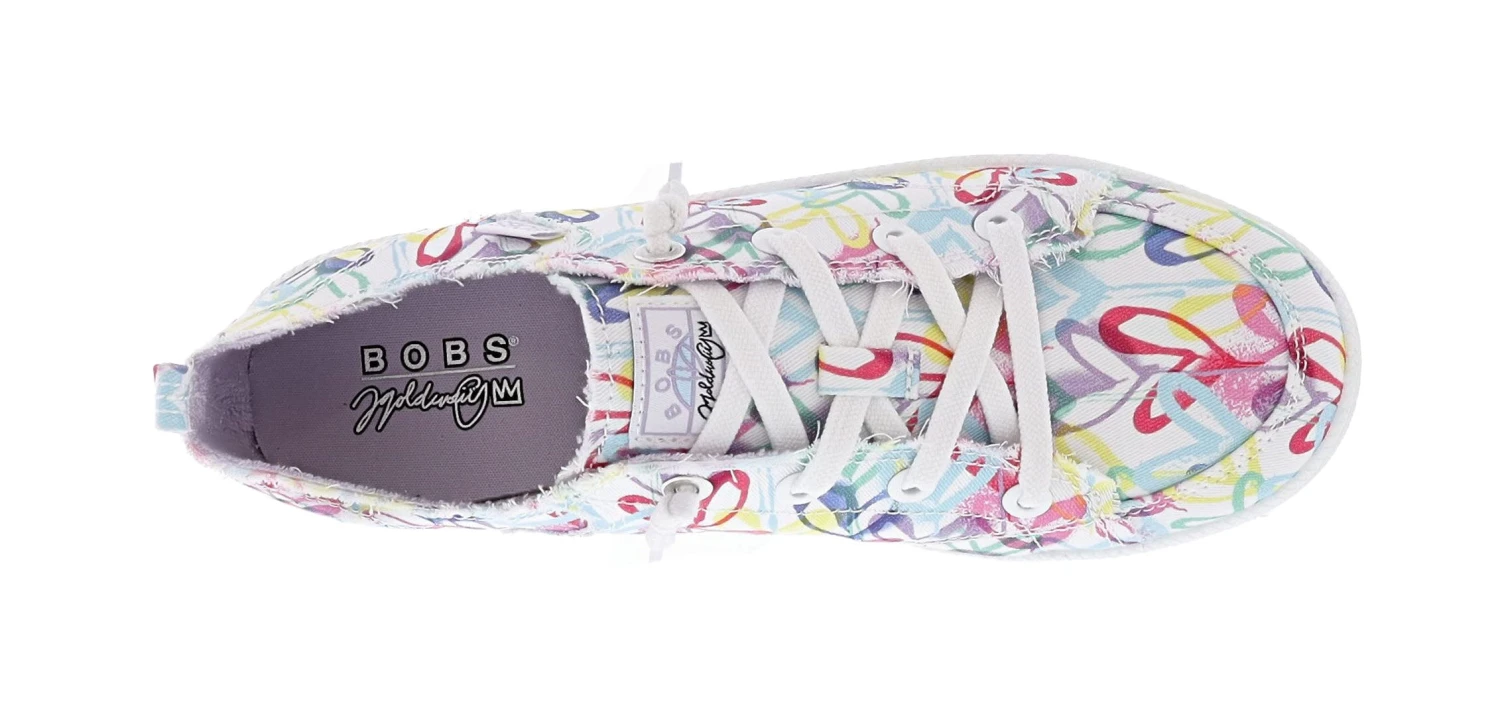 Show your love for rescues with BOBS from Skechers x JGoldcrown: BOBS B Cute 2.0 – Love Crown. This casual design features a ‘hearts’ printed canvas upper with tied-off decorative laces, and a cushioned Skechers Memory Foam insole.