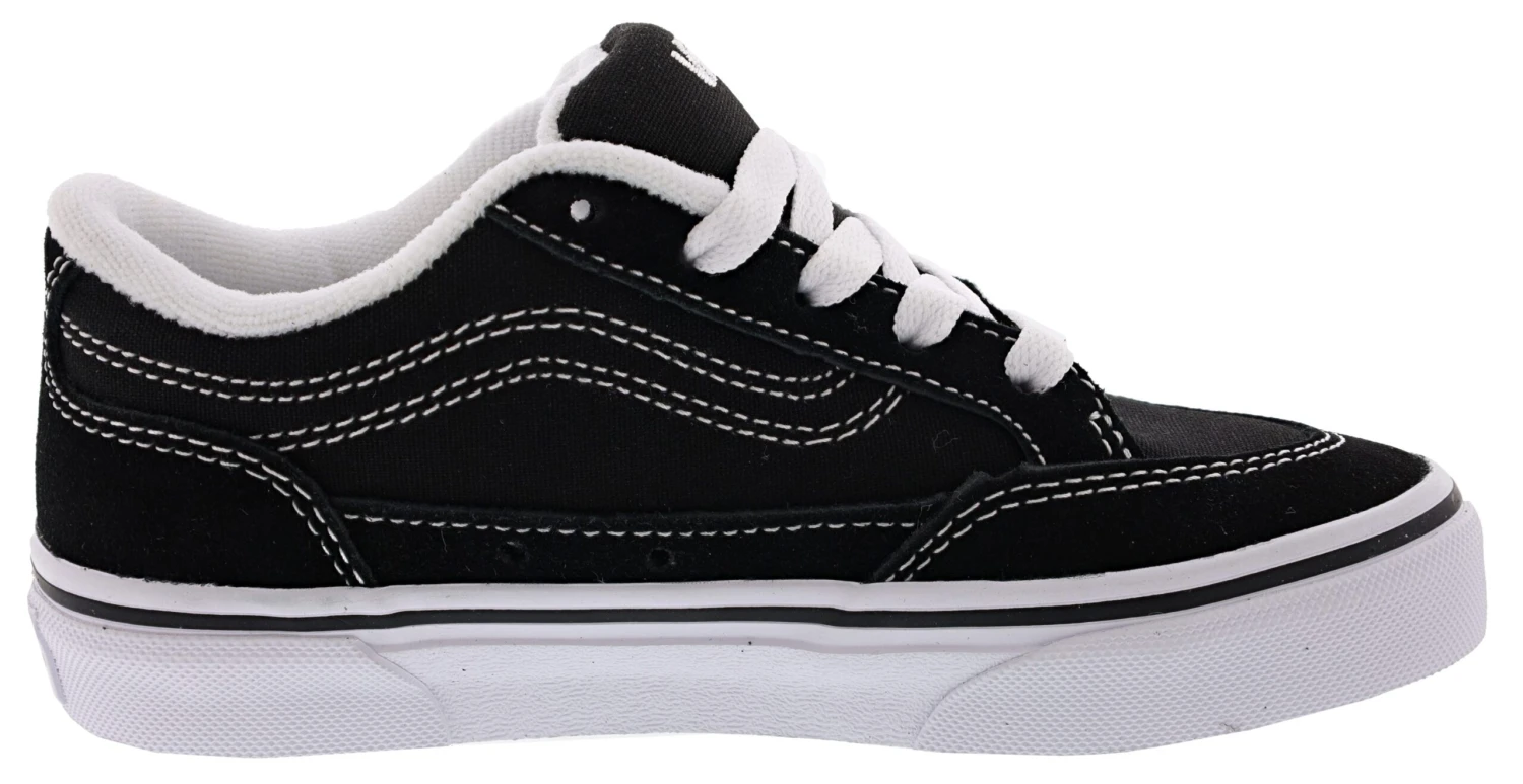 The Vans Kids Bearcat Low Sneakers with the iconic side stripe is a low-top lace-up with reinforced toecaps to withstand repeated wear, signature rubber waffle outsoles, and padded collars for support and flexibility.