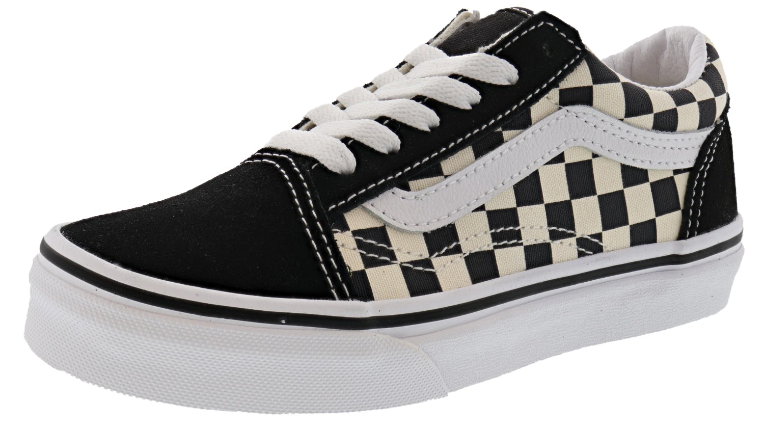 Vans Old Skool Lace Up Skate Shoes, classic skate shoe and the first to bare the iconic side stripe. Vans Old Skool skate shoe is a low top lace-up with a durable canvas upper, padded tongue and lining, metal eyelets and Vans original Waffle Outsole. Order your pair of Vans checkered shoes.
